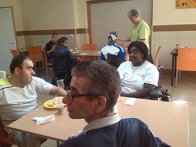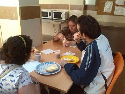 Durante la mañana del día de hoy, jueves 24 de septiembre, nuestros usuarios han realizado una visita a la Asociación de padres y niños autistas de Badajoz, APNABA. El motivo de esta visita ha sido la invitación de un desayuno por parte de nuestros vecinos, los chicos de APNABA, pues han querido mostrarnos el servicio de desayuno que han puesto en marcha los jueves, donde ellos mismos elaboran las tostadas, y lo mejor de todo, gestionan el “negocio”.