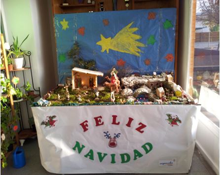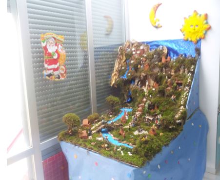 Se decora el centro con nuestros Belenes, en Residencia y otro en el Centro de Día. Trabajos realizados por nuestros usuarios y trabajadores. En su día cada usuario aporta una figurita para los Portales y entre todos coloreamos el cielo, colocamos el musgo, las luces, las casitas, las figuras, los adornos y la nieve.