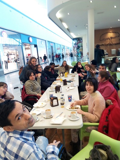 Además de ropa veraniega y conjuntos para las vacaciones que están a la vuelta de la esquina, nuestros usuarios junto con Mari, encargada del Taller, Nieves, Estela y Belén, trabajadoras de ASPACEBA, hicieron un fuerte desayuno en una de las cafeterías que se encuentra en las instalaciones de este centro comercial.