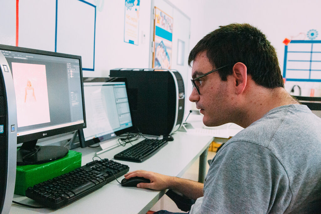 - Actividades prácticas de empleo: Todas las actividades son abordadas mediante el trabajo en cadena, y están englobadas en dos grandes grupos (diseño gráfico e impresión y manipulados y embalaje). Cada usuario lleva a cabo una o varias actividades de todo el proceso creativo, atendiendo a las capacidades y habilidades que presente.